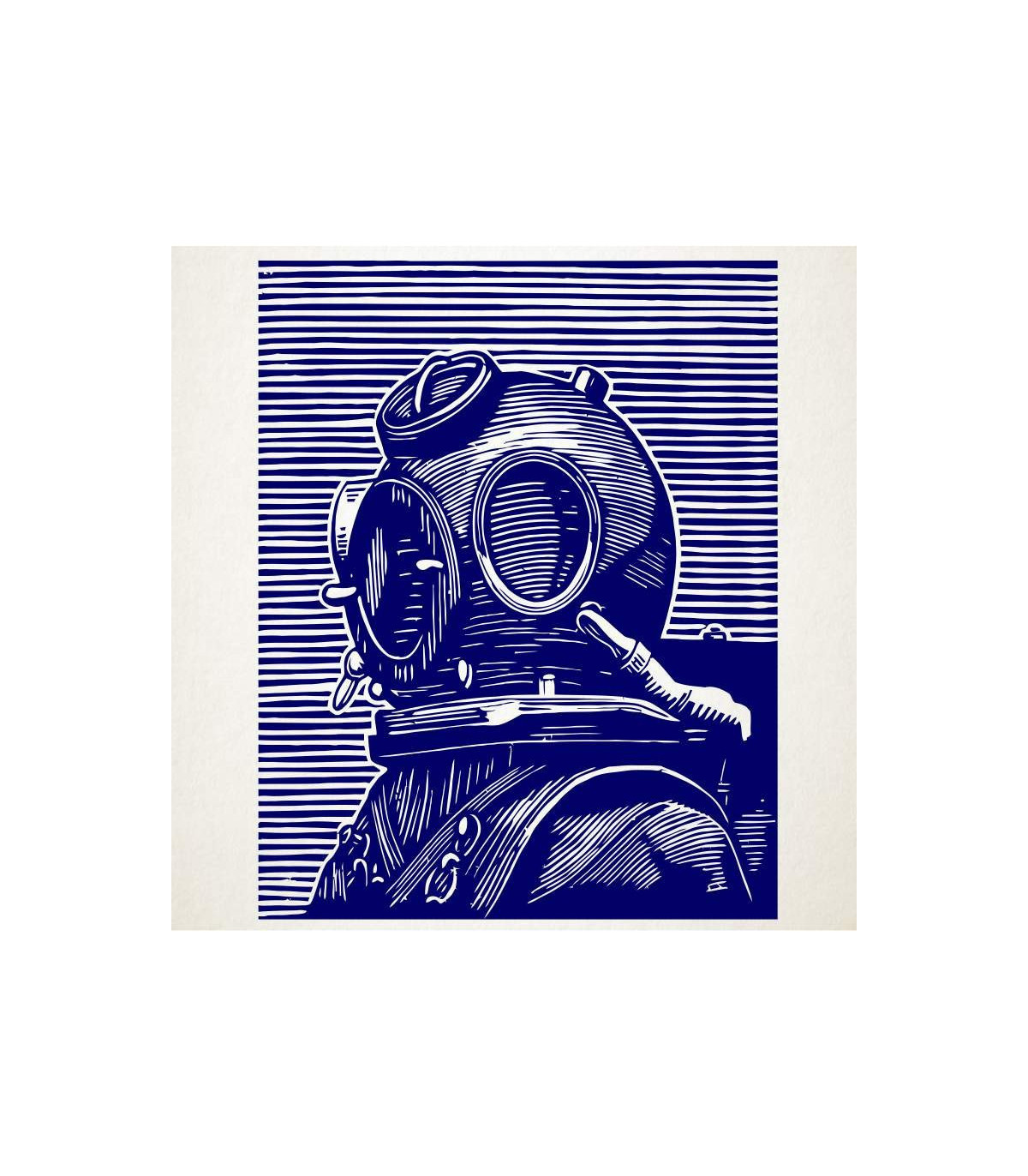 El diseño retro de esta escafandra evoca la estetica de los grabados del renacimiento, tecnica muy usada y difundida con el invento de la imprenta.