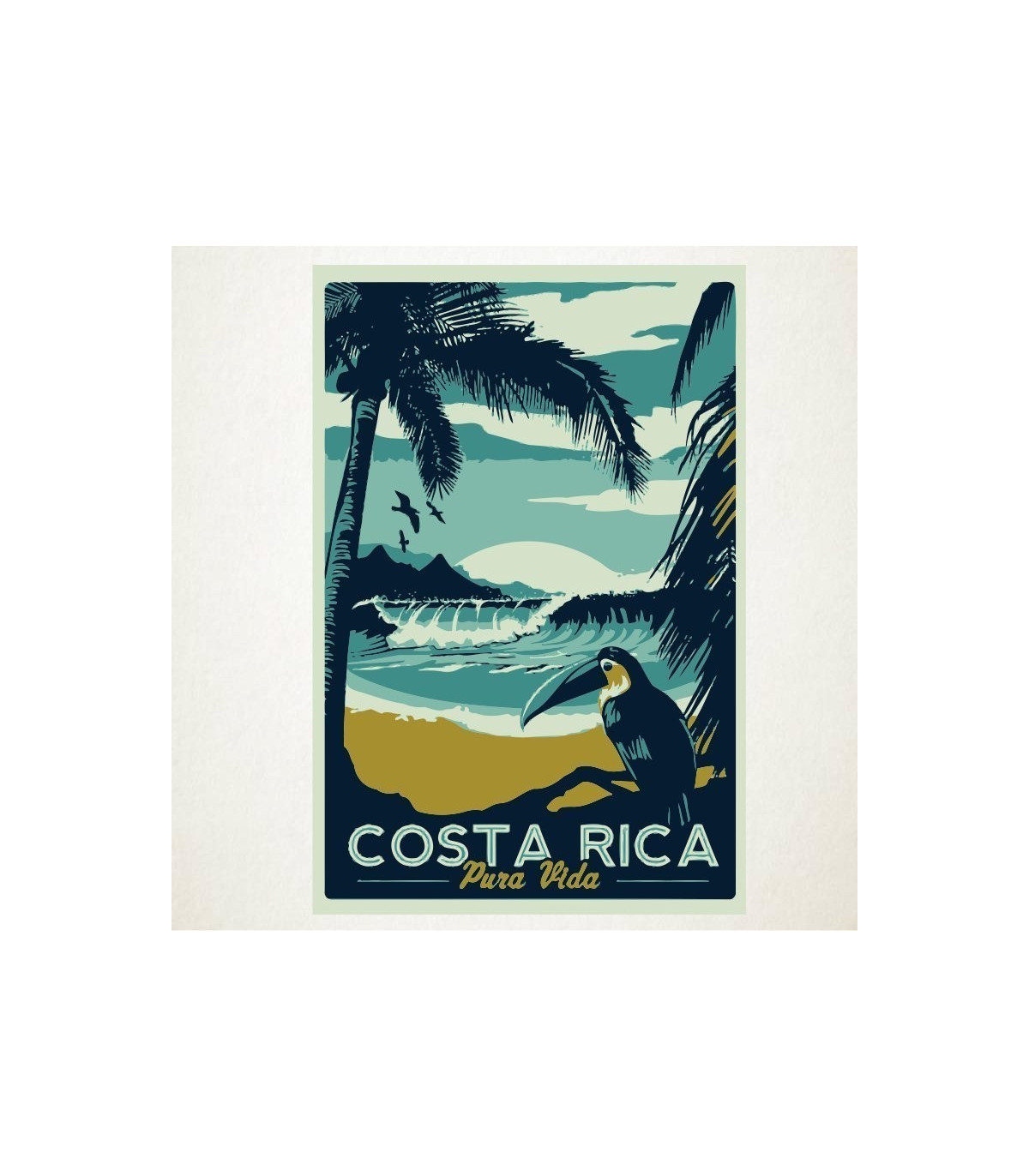 Este cartel de vinilo adhesivo es un clasico cartel vintage de la promoción turistica de Costa Rica.
