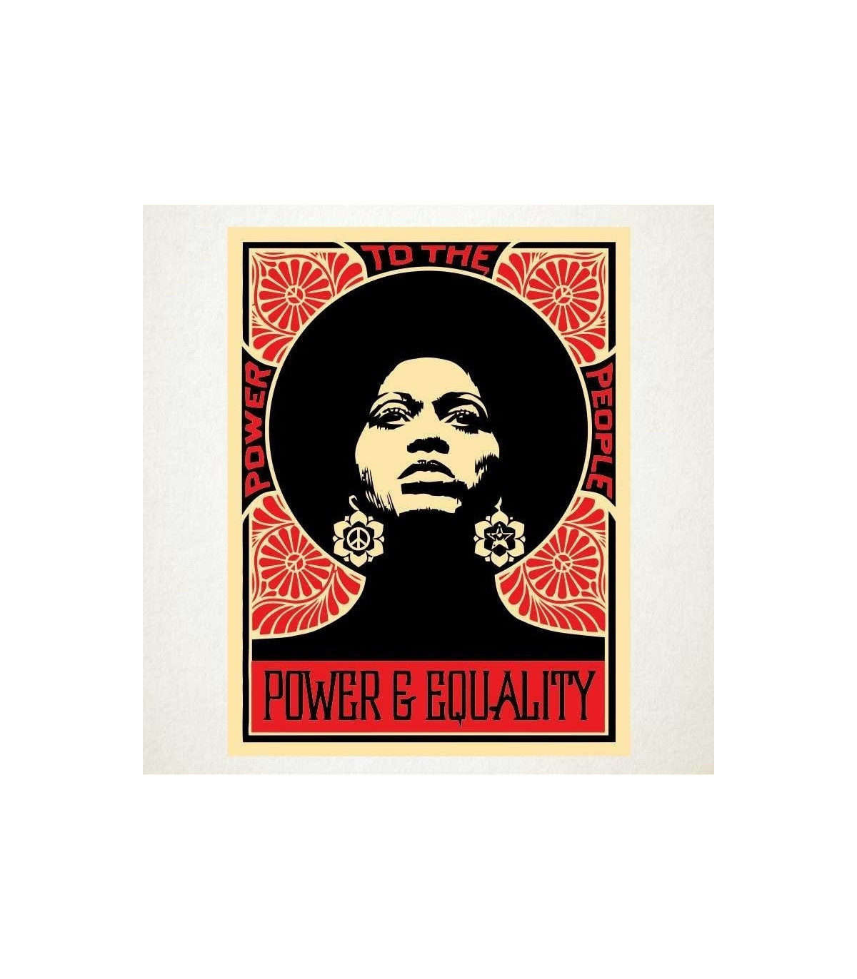 Es un adhesivo de estética pop muy decorativo por su colorido y simbolismo, que con la expresividad del rostro altivo nos recuerda la dignidad de la igualdad.