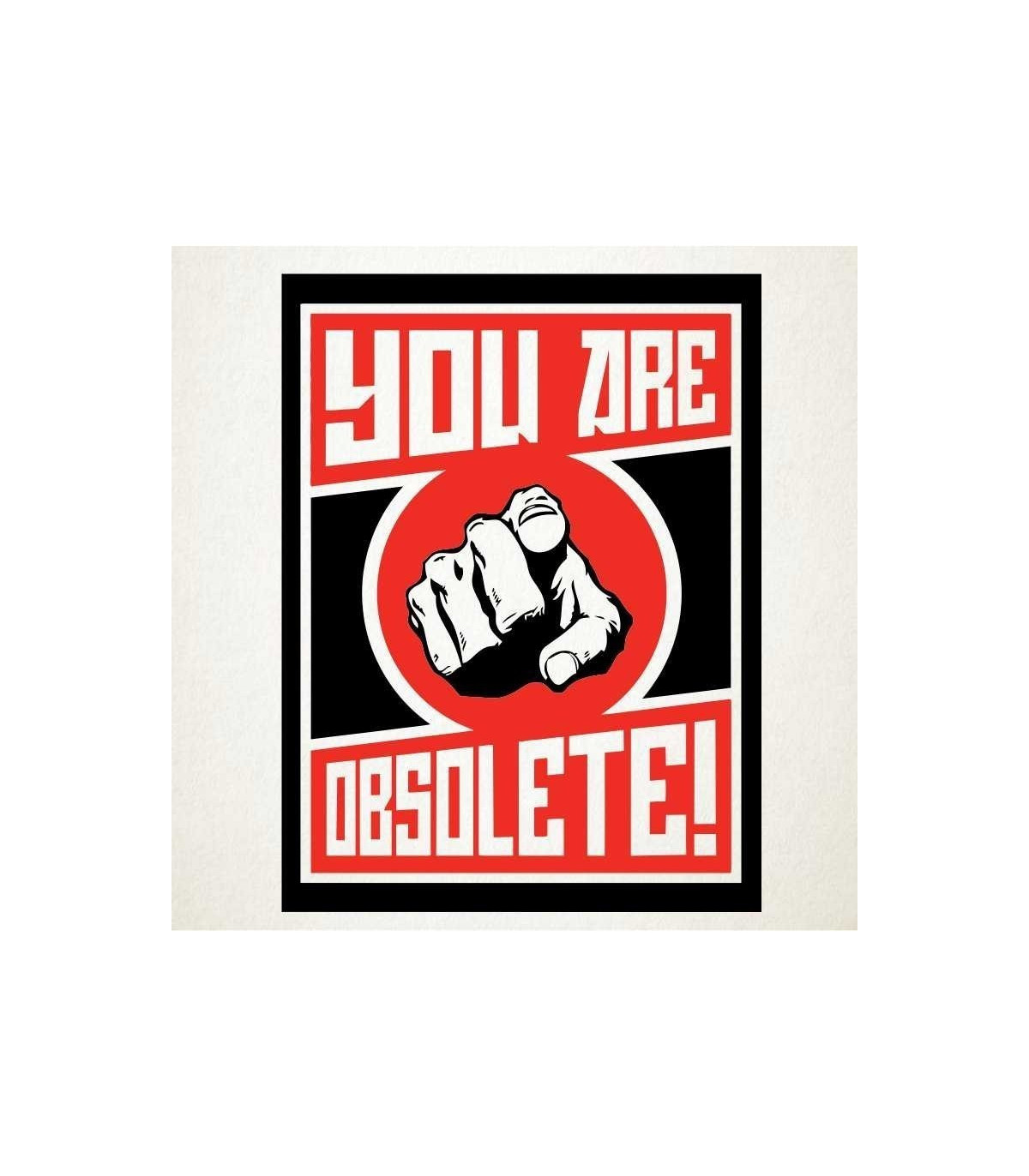 Este cartel de vinilo adhesivo es un motivo decorativo sobre la obsolescencia del individuo en el sistema social actual.