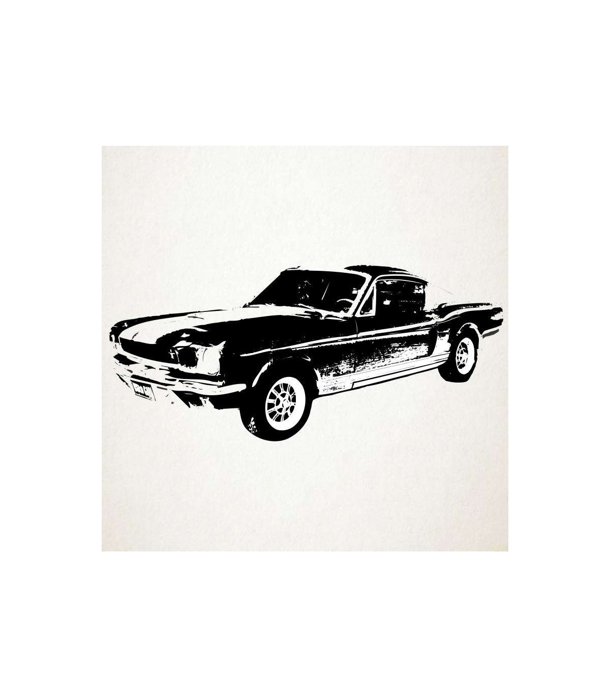 Vinilo decorativo que como motivo principal destaca uno de los coches mas emblemáticos de la fabrica Ford, el Mustang.
