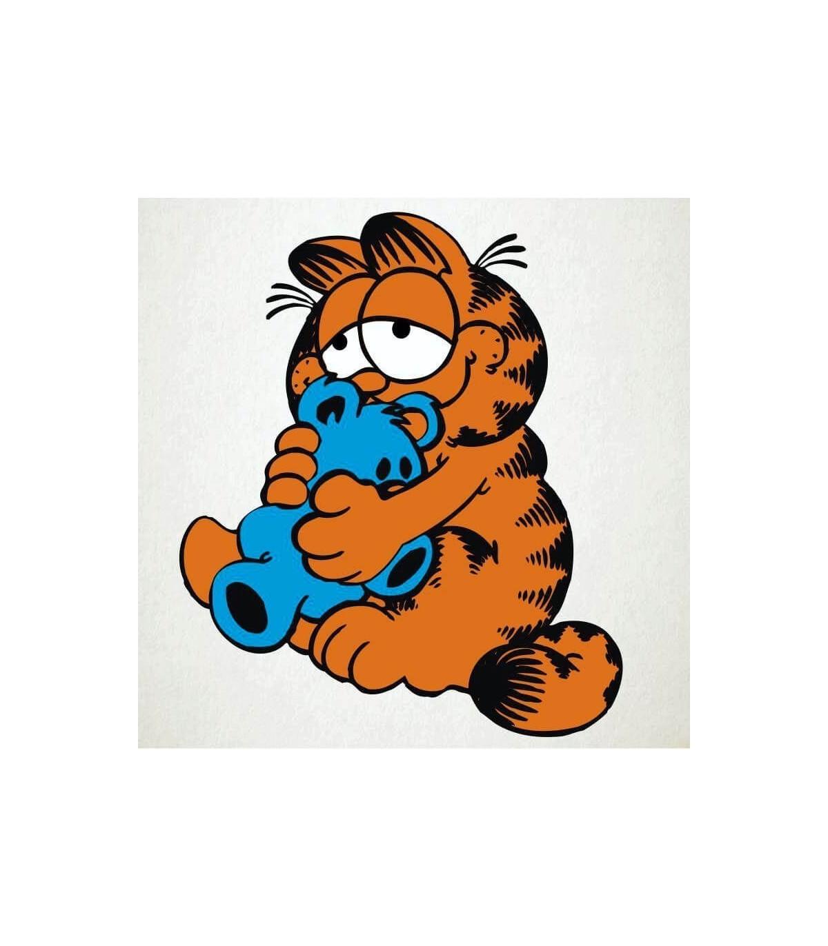 Garfield en este sticker mantiene un sentimiento bondadoso y entrañable abrazado a su osito