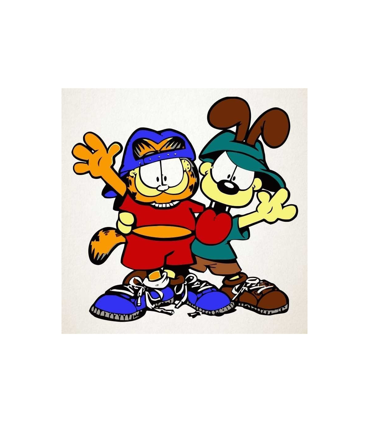Este vinilo para la decoración de la habitación de los niños, es un diseño decorativo de la pareja de compañeros de aventuras Garfield y Oddie
