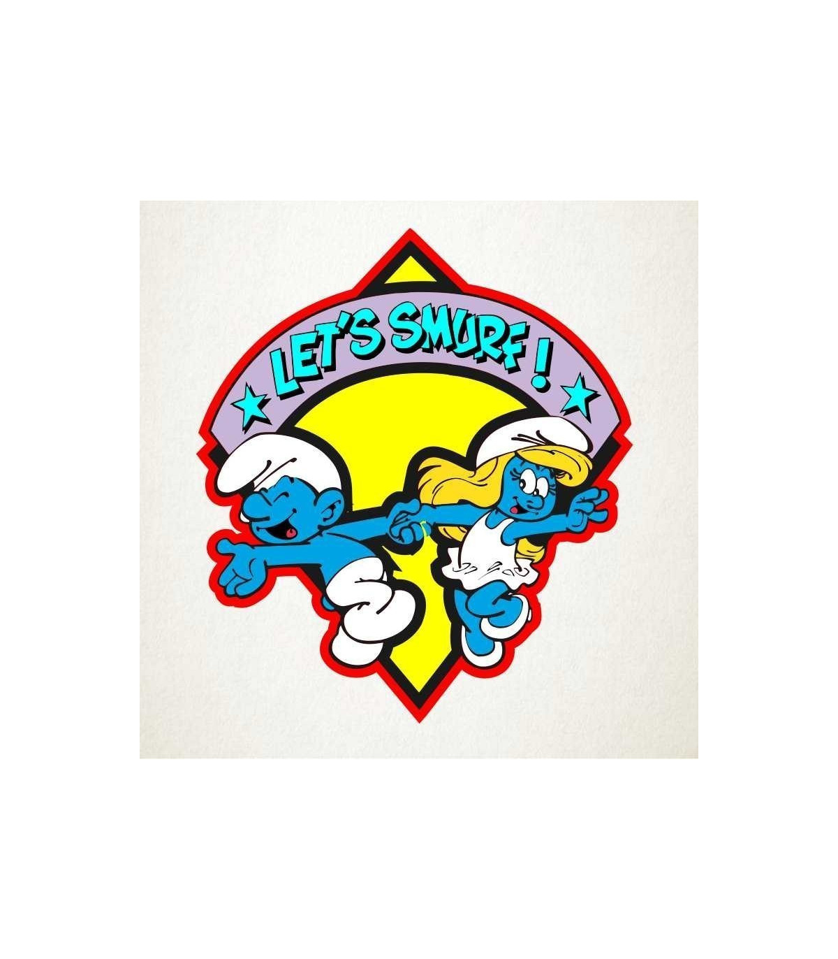 El anagrama que compone el sticker de Lets-Smurfs donde aparecen súper contentos y bailando pitufina y pitufo fortachón es un sticker muy decorativo y sencillísimo de colocar.