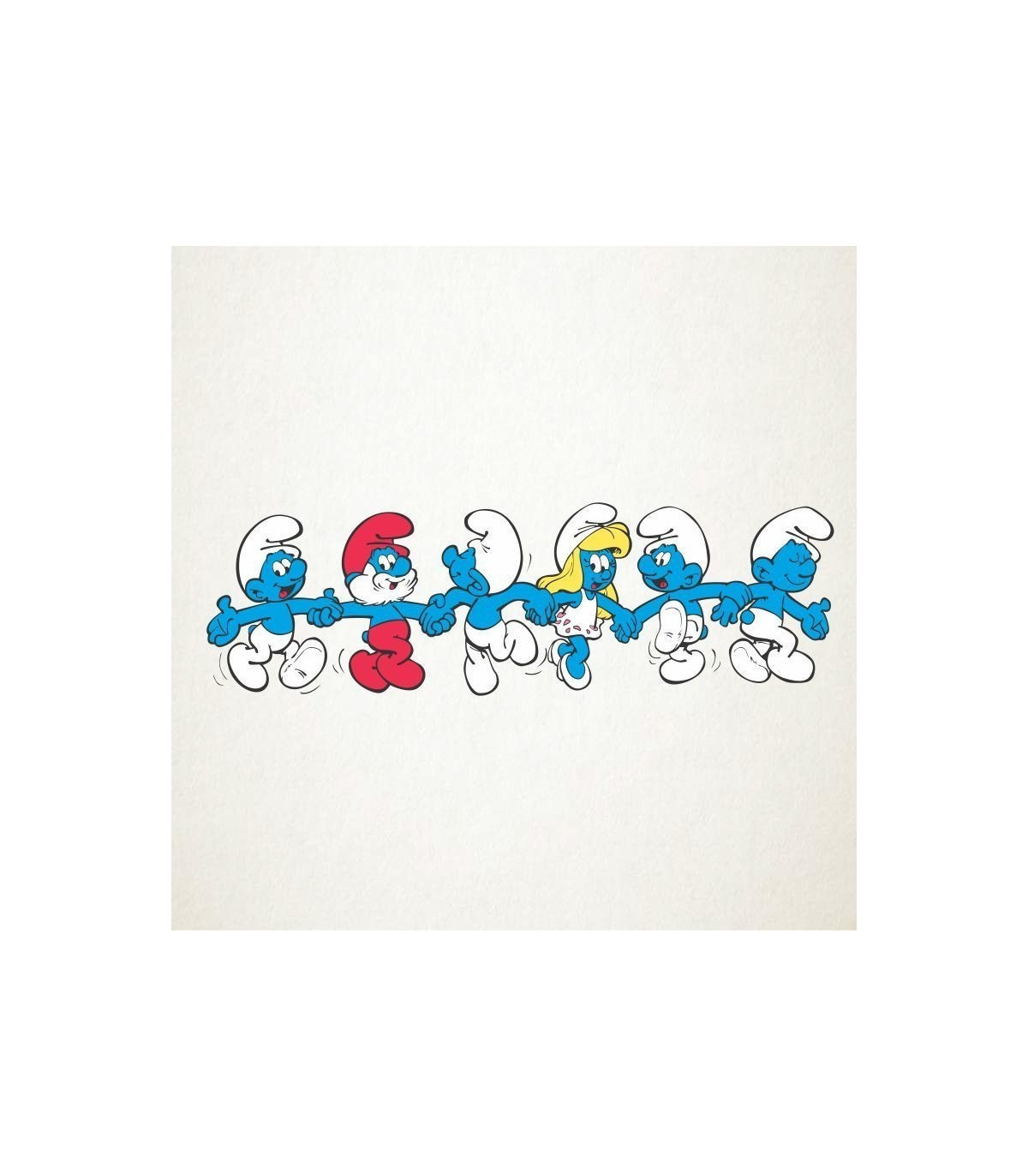 Este diseño de los pitufos bailando es un sticker lleno de alegría para colocar en un espacio lúdico y divertido donde jugar los niños
