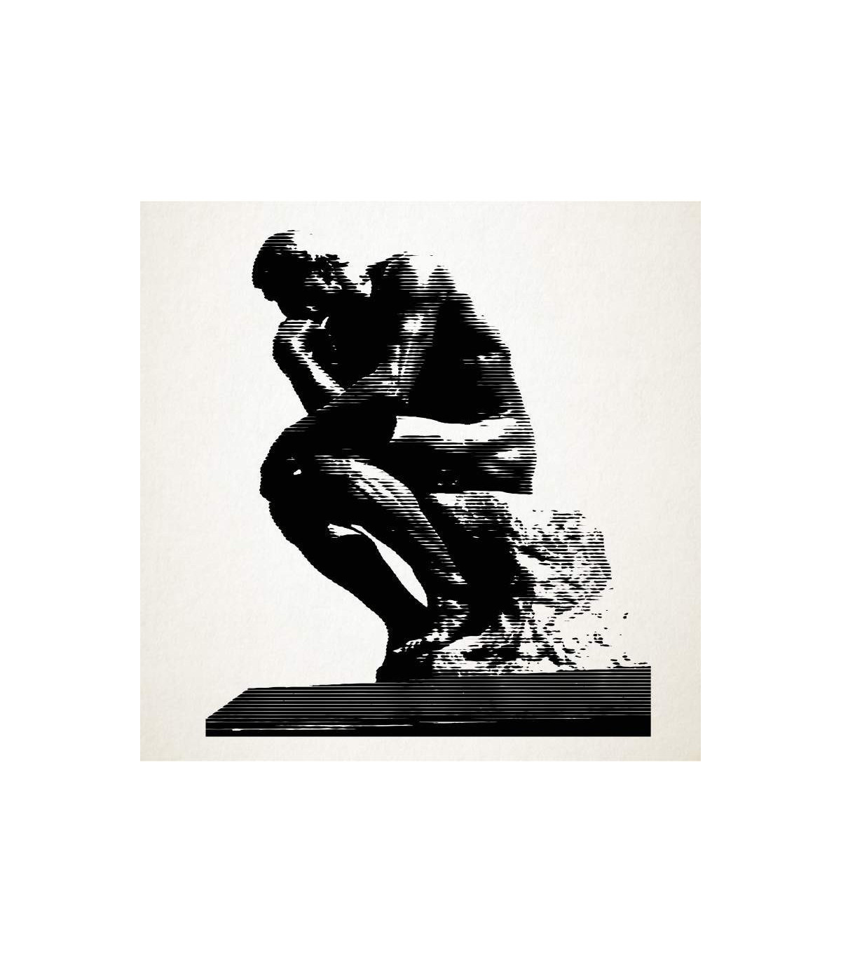 El sticker del Pensador es un reflejo en vinilo de una de las esculturas más famosas de Auguste Rodin. El escultor concibió esta pieza entre 1881 y 1882 para decorar el tímpano del conjunto escultórico La Puerta del Infierno,