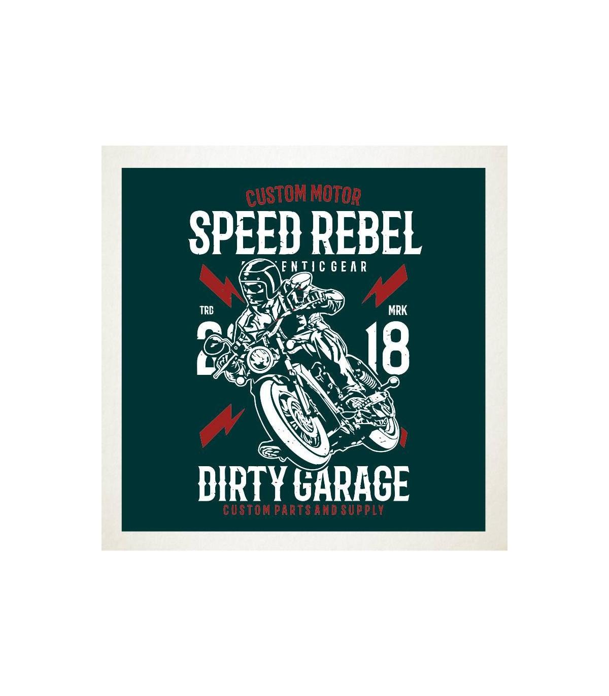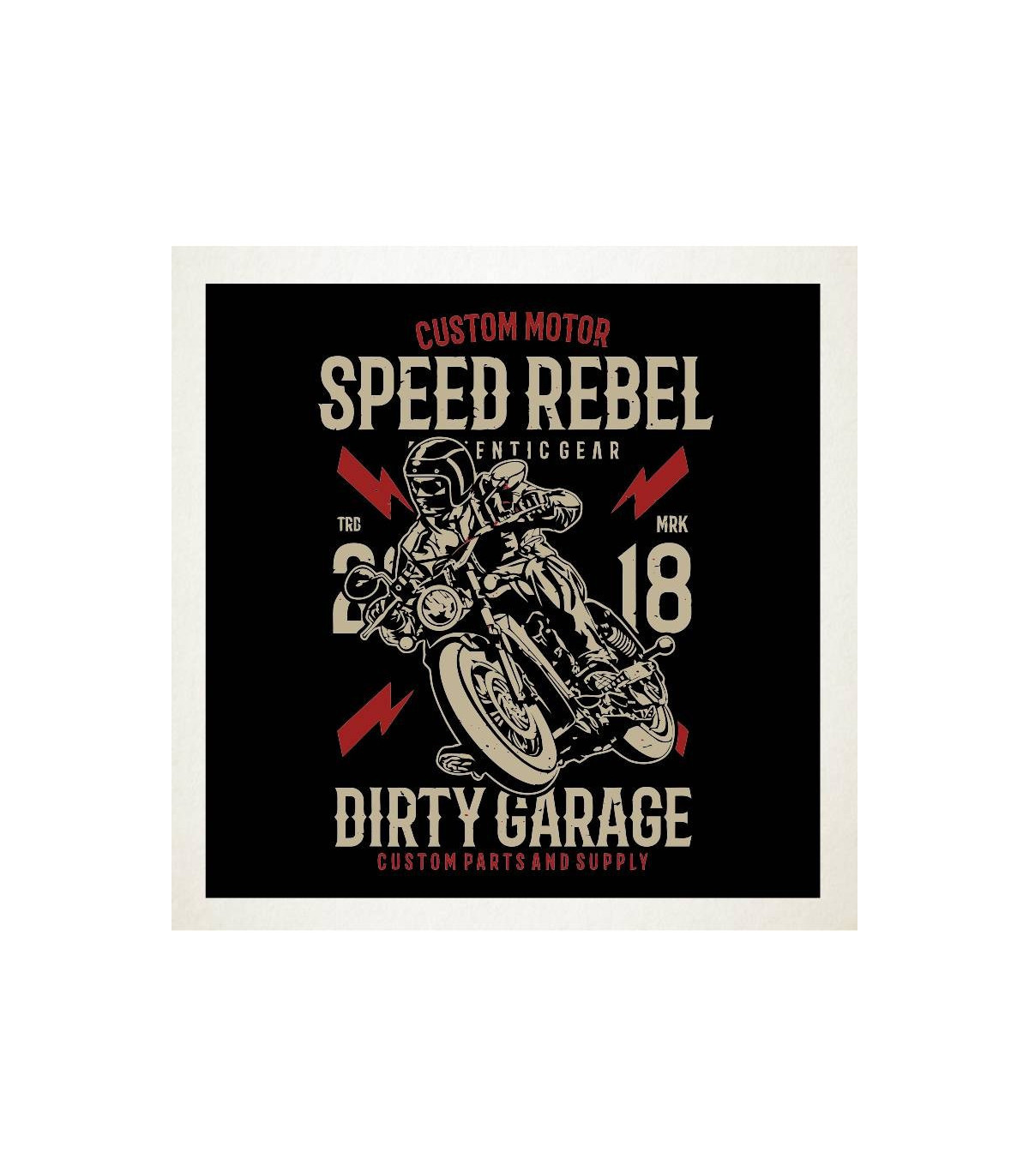 El diseño de este cartel evoca un estilo grunge con el motivo de los rebeldes de la velocidad.