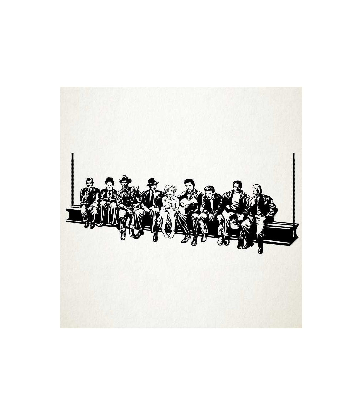 Vinilo decorativo actores y directores de cine de holliwod sentados en la famosa viga de la construccion del empire state.
