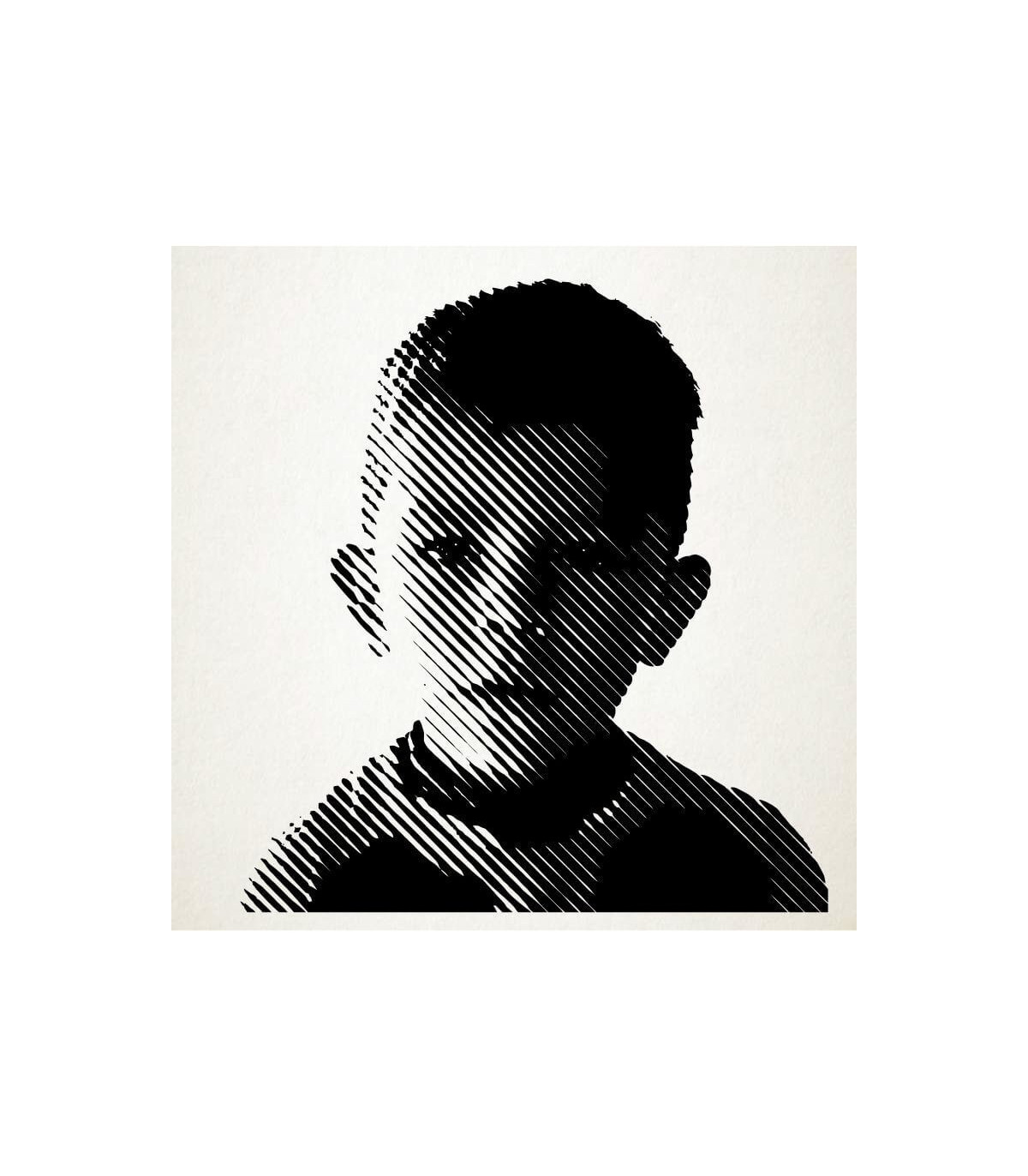 Retrato en vinilo de una foto de resolucion baja y encuadre difuso.