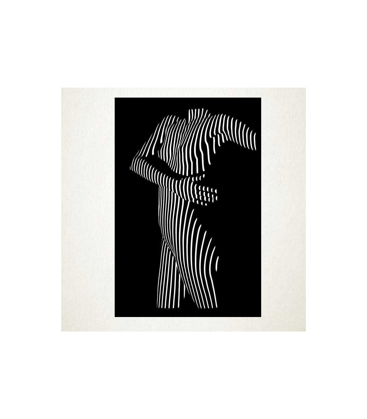 Diseño en vinilo adhesivo de una silueta de figura humana que muestra un sugerente efecto de la luz en la silueta de un torso.