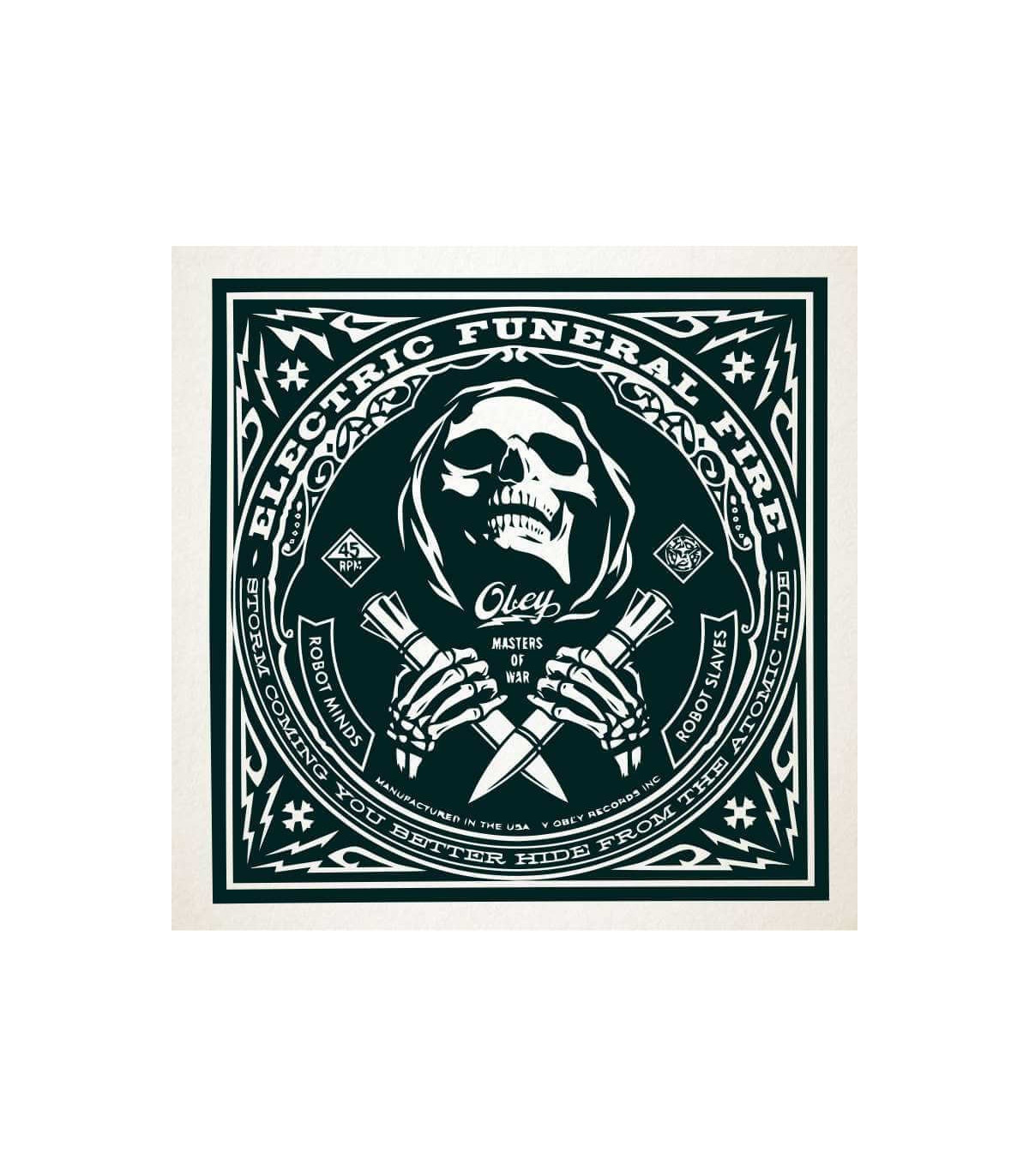 Este adhesivo de vinilo con el logo de Electric-funeral es un agresivo elemento decorativo de tematica Heavy.